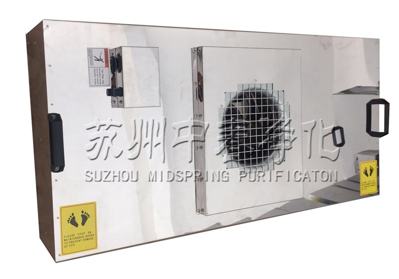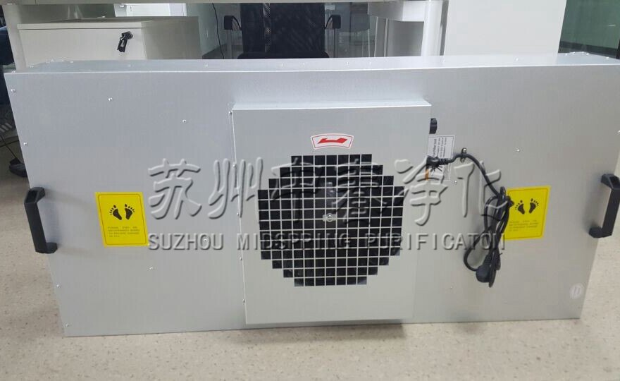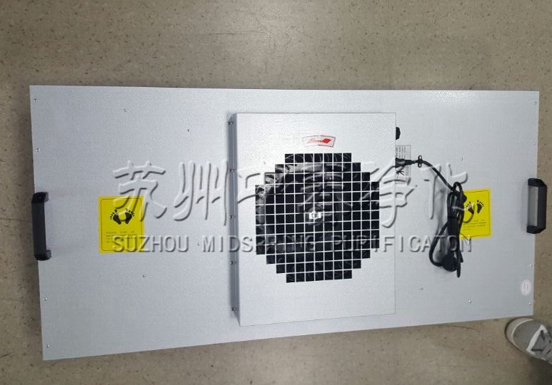 風機過濾機組(FFU)設(shè)有初、高效兩級過濾網(wǎng)。風機從FFU頂部將空氣吸入并經(jīng)初、高效過濾器過濾,過濾后的潔凈空氣在整個出風面以0.45-0.65m/s ±20%的風速勻速送出。