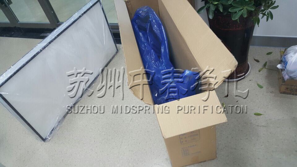 說明:風機過濾機組(FFU)設(shè)有初、高效兩級過濾網(wǎng)。風機從FFU頂部將空氣吸入并經(jīng)初、高效過濾器過濾,過濾后的潔凈空氣在整個出風面以0.45-0.65m/s ±20%的風速勻速送出…